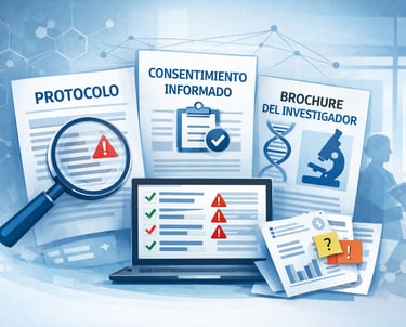 Revisión técnica preliminar de documentación clínica (Protocolo / FCI / BI)